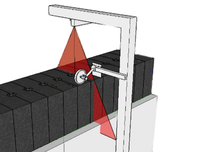 AUTOMATIC POSITIONINGBy use of 3D Line or Spot Laser the system will perform the Automatic Positioning without the need of installing other equipment. When the cup is detected, the pouring unit will be moved to the correct pouring position. A LINE SCANNER SENSOR MEASURES THE COMPLETE MOLD WIDTH. – An encoder tracks all sand/mold line movements, completely separate from all other systems. – The sensor is programmed to identify pouring cups. – The sensor detects the cup while it passes by the scanner and stores its position. – All cups are analyzed individually for dimension, position and any other possible differences.